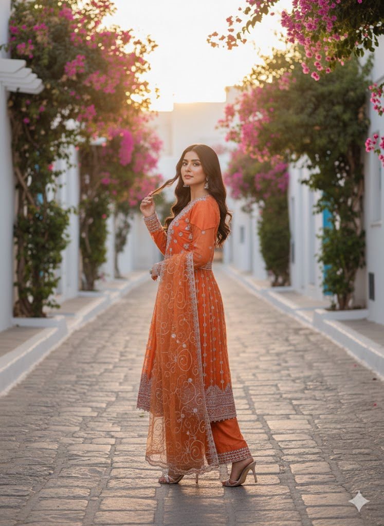 Be the first to review “Orange Net Long Frok”