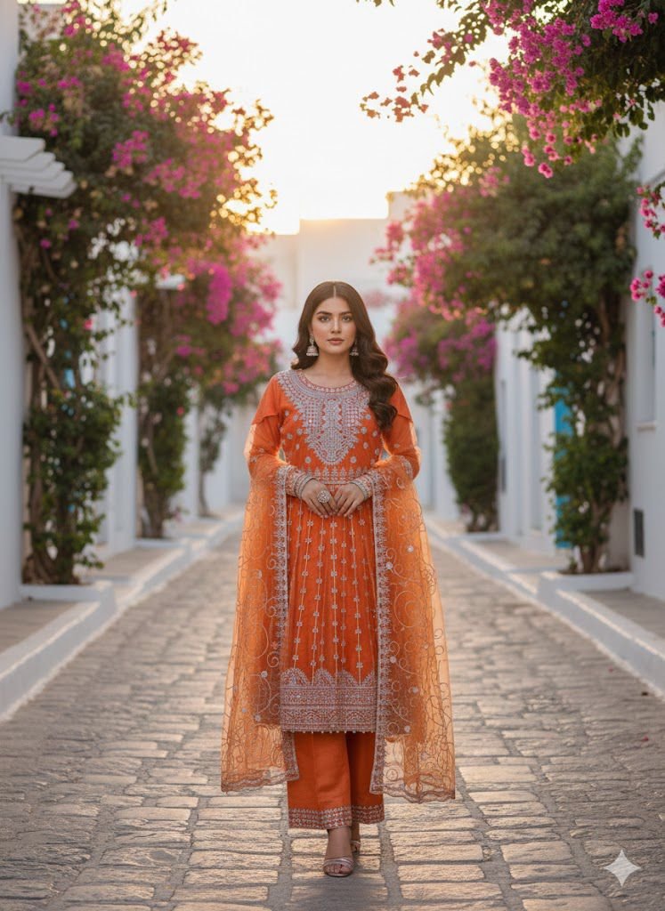 Fabric: medium quality organza and raw silk (All-weather suitable)
